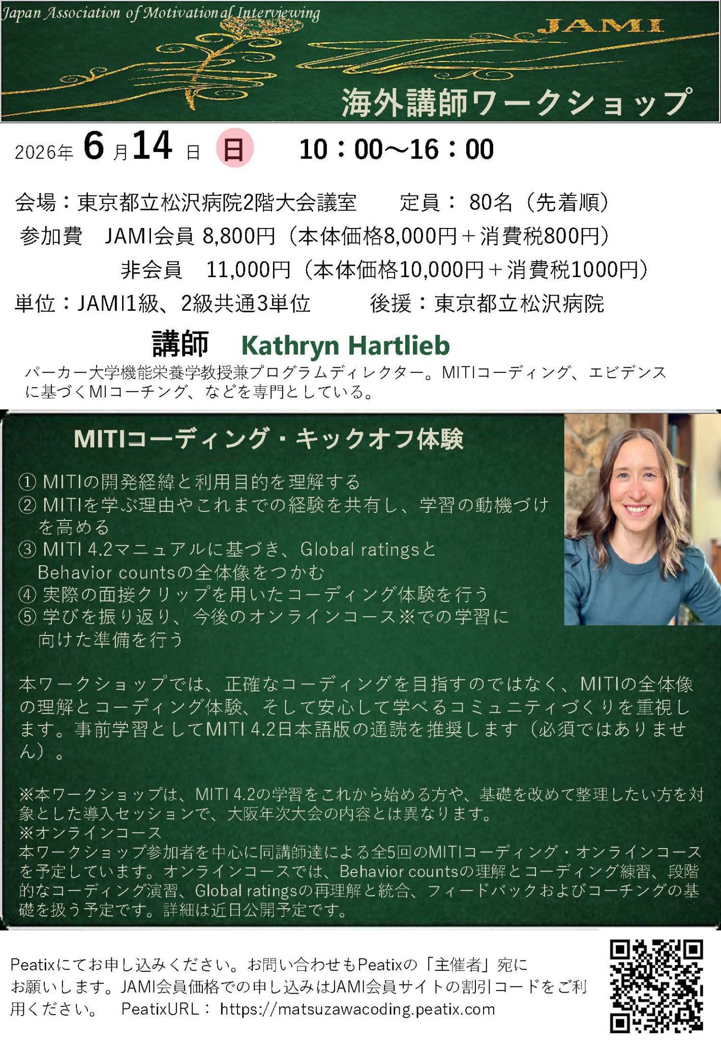 ・JAMI第14回年次大会&ワークショップを2026年6月6日(土)、7日(日)に大阪にて開催予定です。